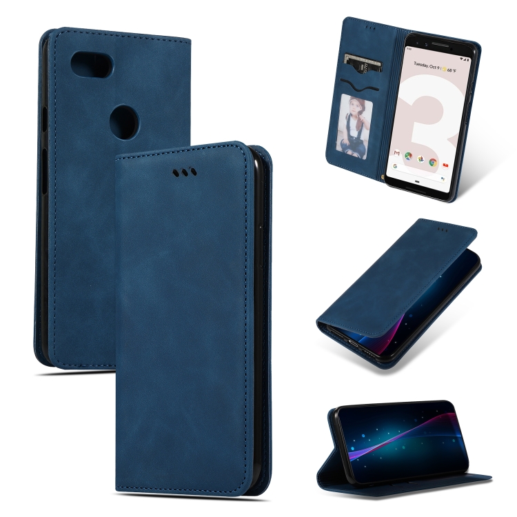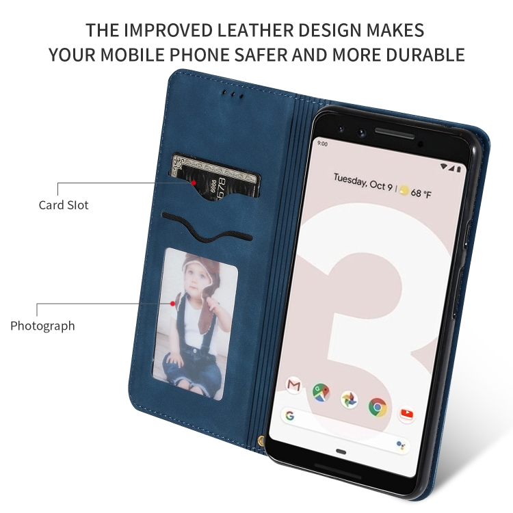 Funda de Cuero con Tapa Horizontal Magnética Retro Skin Feel Business para Google Pixel 3 (Azul Marino)