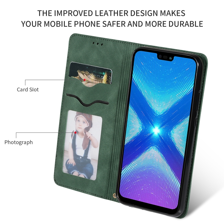 Funda de Cuero con Tapa Horizontal Magnética para Huawei Honor 8X (Verde Militar)