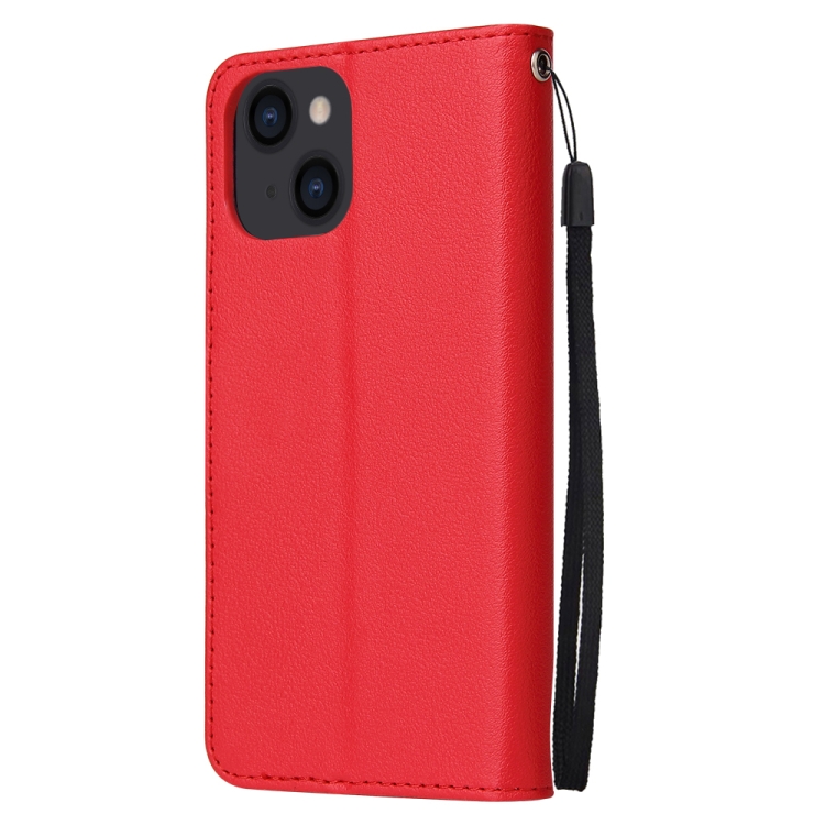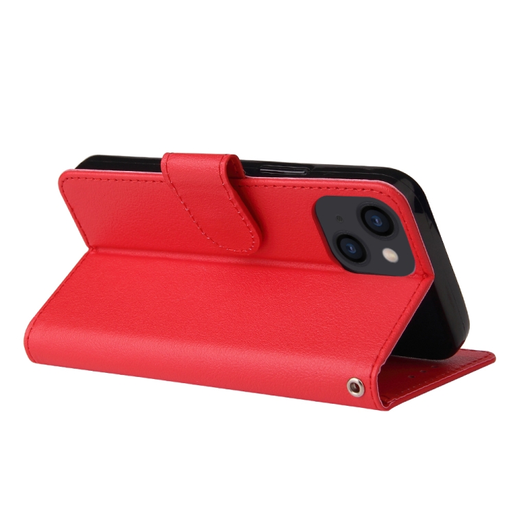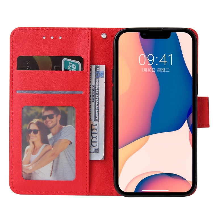 Funda de Cuero iPhone 14 Tapa Horizontal Multifuncional con Ranuras para Tarjetas (Rojo)