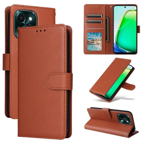 Funda de Cuero con Tapa Horizontal Multifuncional para Teléfono Vivo Y28 4G con Ranura para Tres Tarjetas (Marrón)