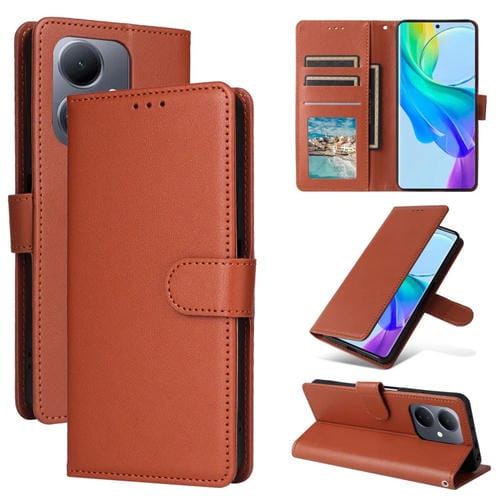 Funda de Cuero con Tapa Horizontal Multifuncional para Vivo Y36 4G Global / Y78 con Ranura para Tres Tarjetas (Marrón)