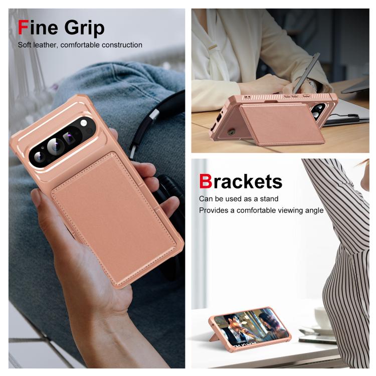 Funda de Cuero con Tapa Horizontal para Google Pixel 9 Pro XL (Oro Rosa)