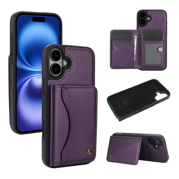 Funda de Cuero con Tapa Horizontal para iPhone 16 Awquer con Tarjetero (Morado Oscuro)