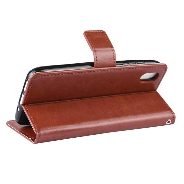 Funda de Cuero Huawei Y5 (2019) Tapa Horizontal Retro Soporte Ranuras Tarjetas Marco Fotos (Marrón)