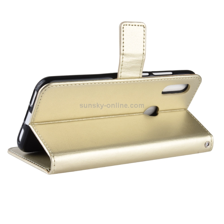 Funda de Cuero Retro con Tapa Horizontal para Huawei Y6 (2019) con Soporte y Ranuras (Dorado)