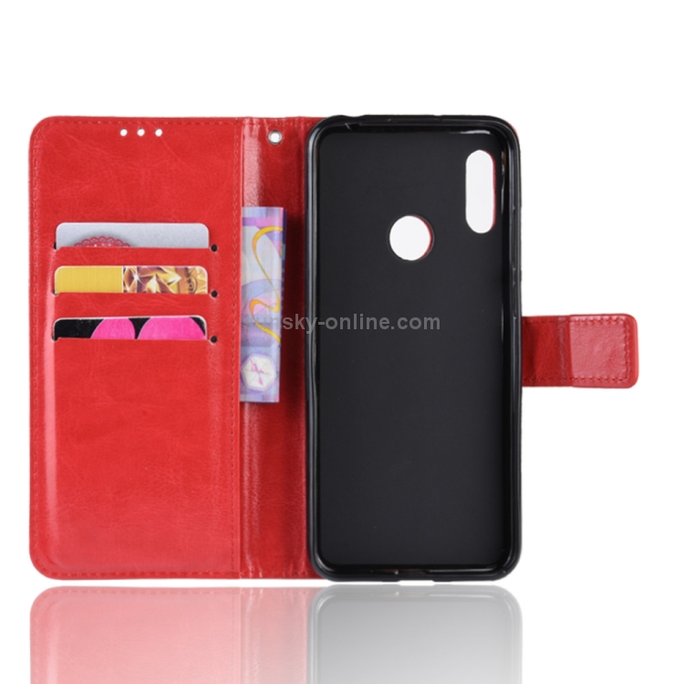 Funda de Cuero con Tapa Horizontal Retro Textura Caballo Loco para Huawei Y6 (2019) con Soporte y Ranuras (Rojo)