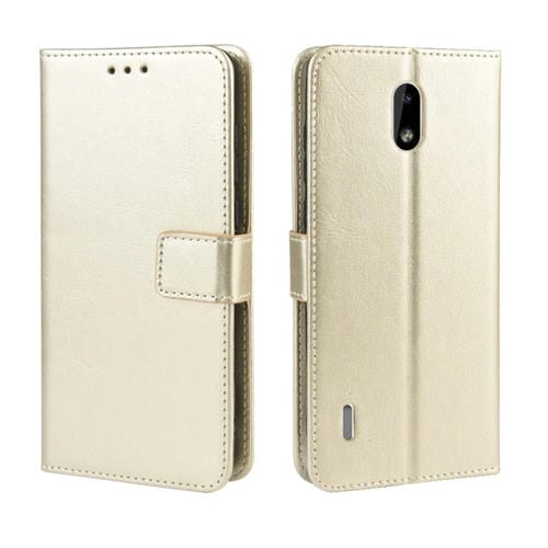 Funda de Cuero con Tapa Horizontal Retro para Nokia 3.1 C con Soporte y Ranuras (Dorado)