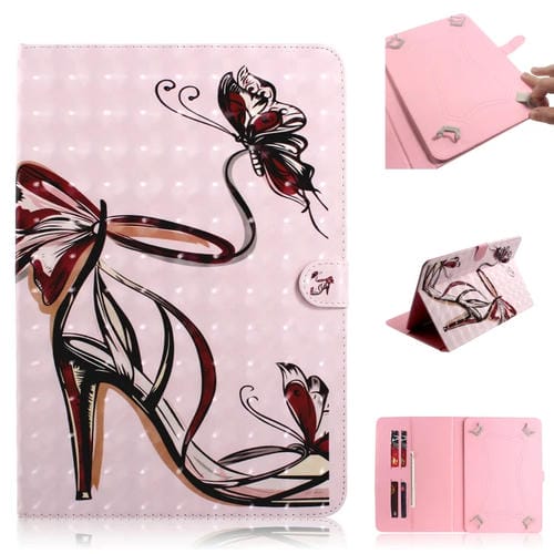 Funda Cuero Universal Tablet 7 Pulgadas con Tapa Horizontal Soporte Ranura Tarjeta Billetera (Tacón Alto)