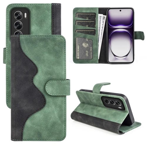 Funda de Cuero con Tapa Horizontal y Costuras Globales para Oppo Reno12 Pro 5G (Verde)