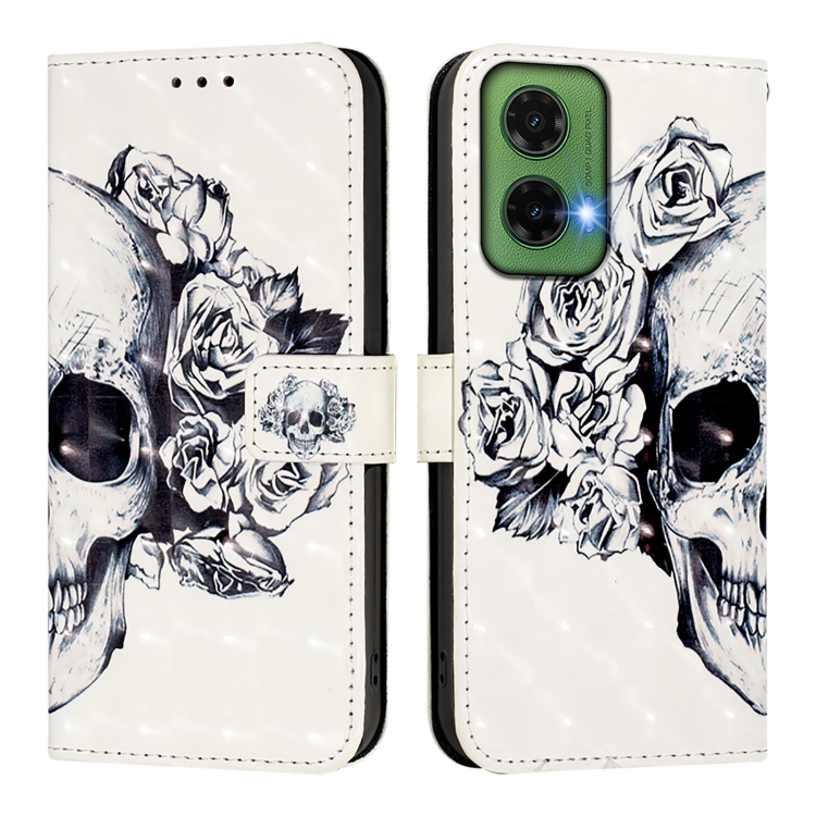 Funda de Cuero con Tapa Horizontal y Pintura 3D para Motorola Moto G35 (Calavera)