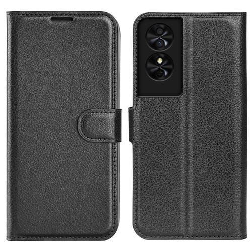 Funda de Cuero para Teléfono TCL 50 Se con Tapa Horizontal y Textura de Lichi con Soporte (Negro)