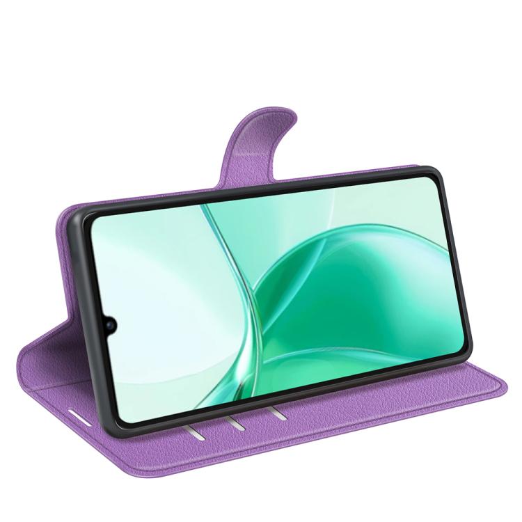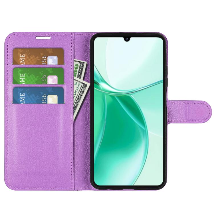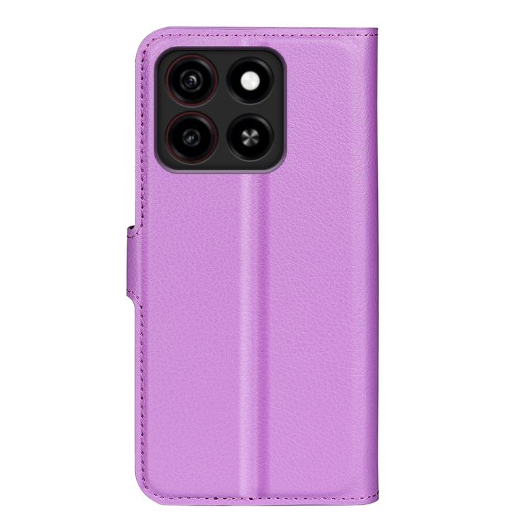 Funda de Cuero para ZTE Blade A35 con Tapa Horizontal, Textura de Lichi y Soporte (Morado)