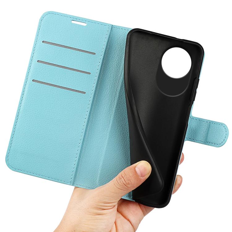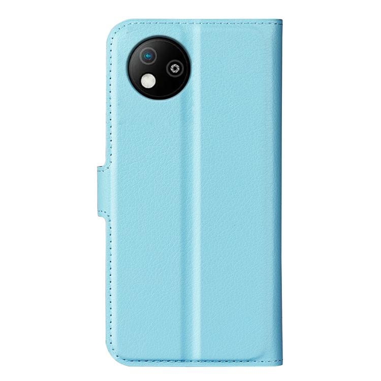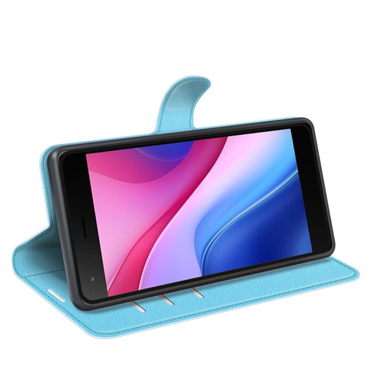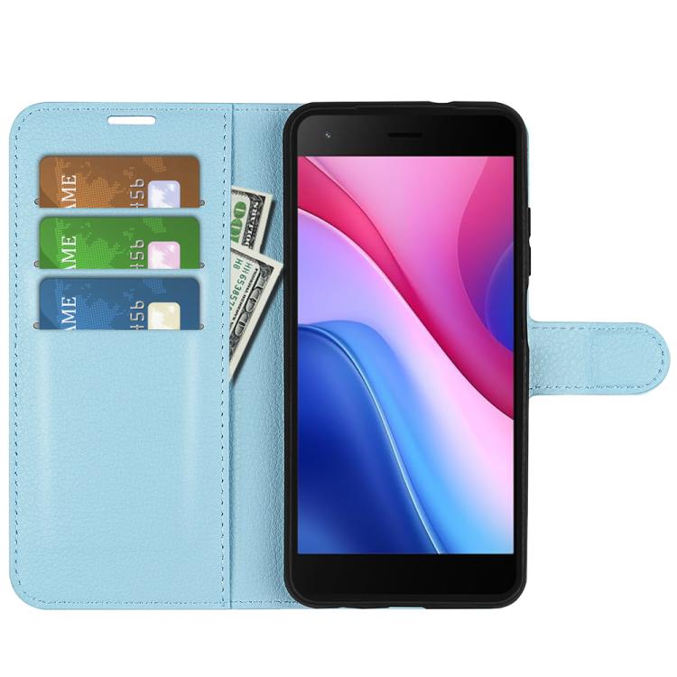 Funda de Cuero para ZTE Blade A35 Lite con Tapa Horizontal, Textura de Lichi y Soporte (Azul)