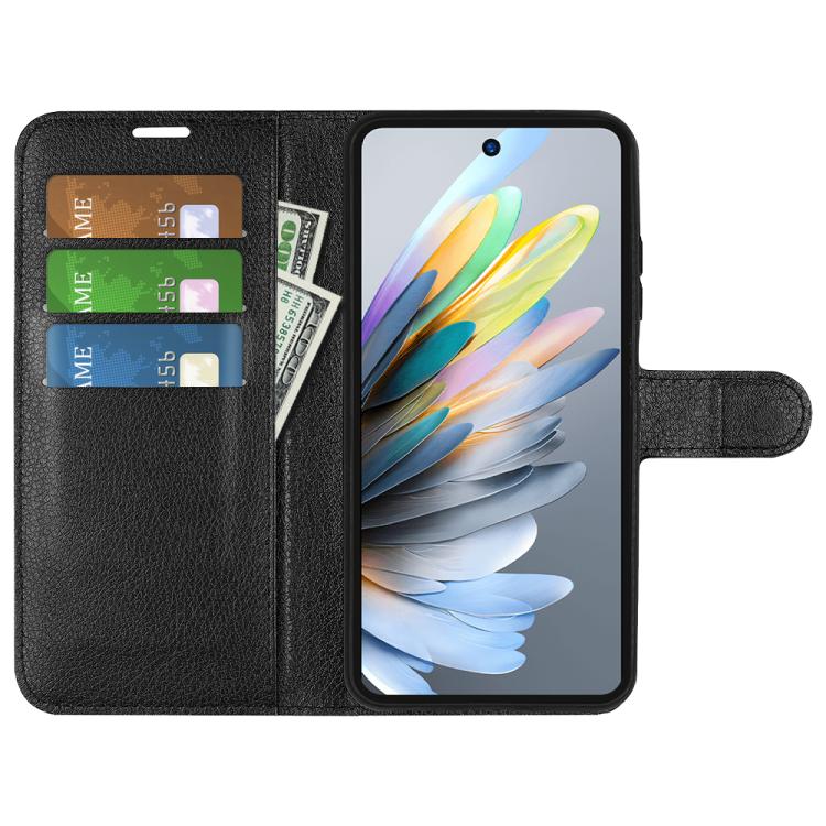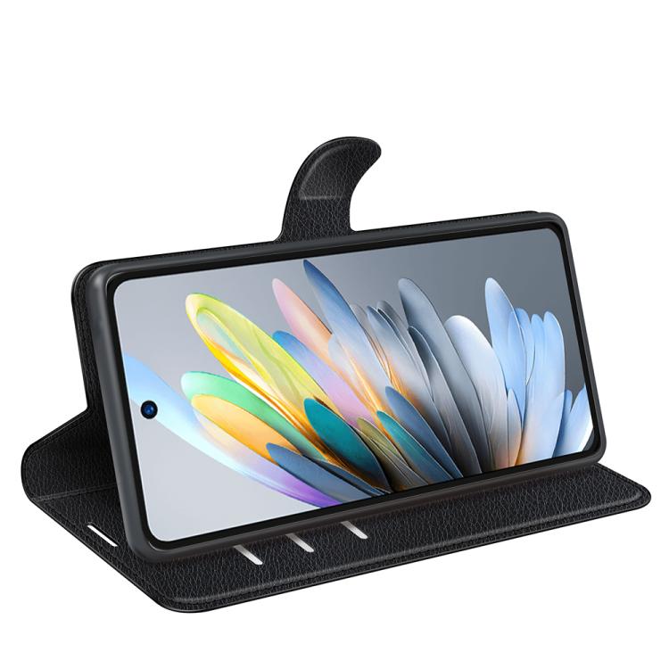 Funda de Cuero para ZTE Blade A75 con Tapa Horizontal y Textura de Lichi con Soporte (Negro)