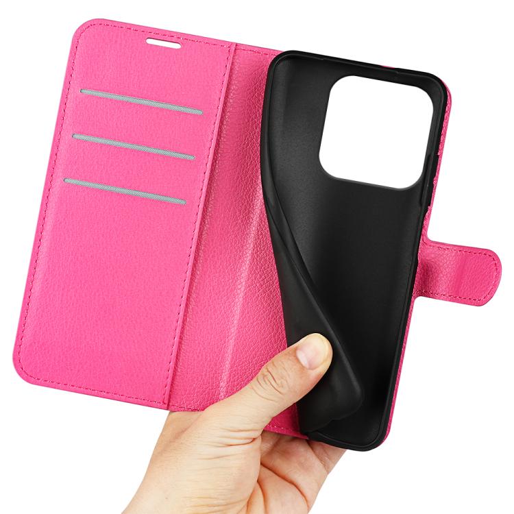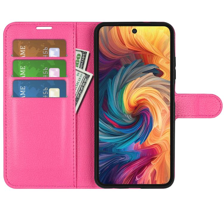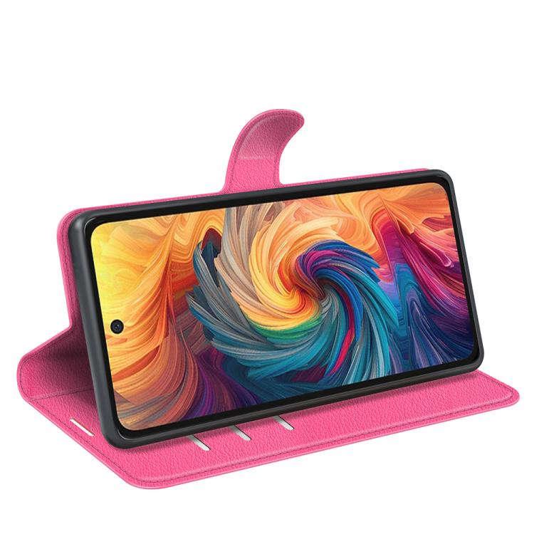 Funda de Cuero con Tapa Horizontal y Textura de Lichi para ZTE Blade V70 con Soporte (Rosa y Rojo)