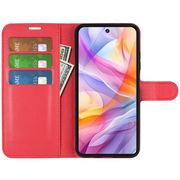 Funda de Cuero para ZTE Blade V70 Vita con Tapa Horizontal, Textura de Lichi y Soporte (Rojo)