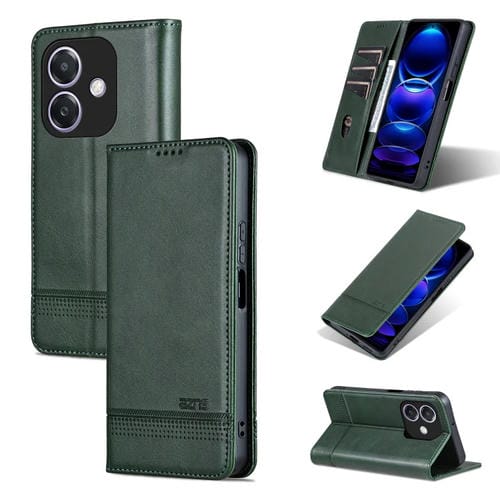 Funda de Piel con Tapa Magnética Azns para Oppo A3X 4G (Verde Oscuro)