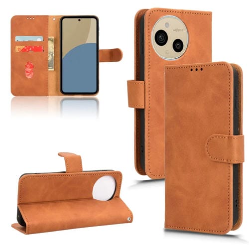 Funda de Cuero para Sharp Aquos Sense9 con Tapa Magnética y Tacto Piel (Marrón)