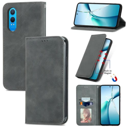Funda de Cuero con Tapa Magnética para OnePlus Ce 4 Lite (Gris)