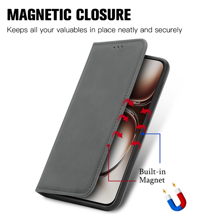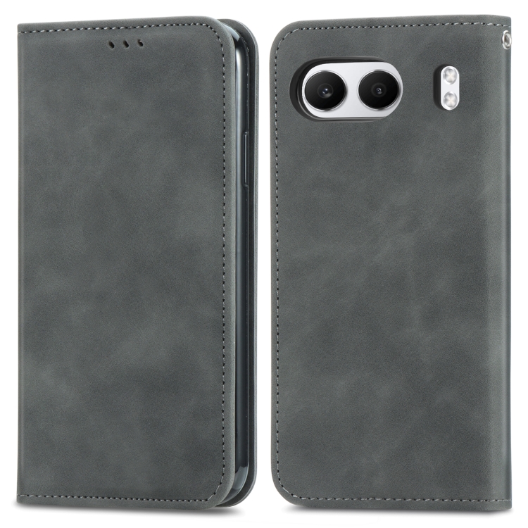 Funda de Cuero con Tapa Magnética y Tacto Retro para OnePlus Nord 4 (Gris)