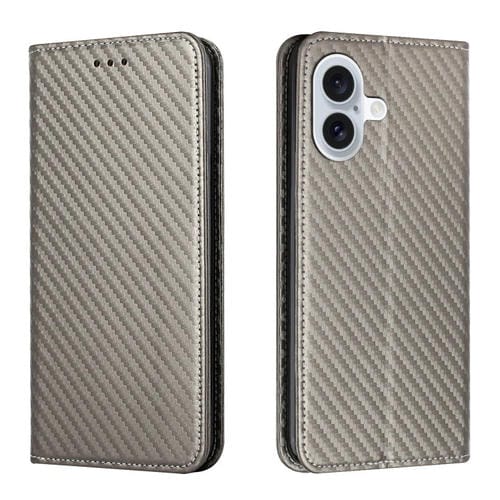 Funda de Cuero iPhone 16 Plus Tapa Magnética Textura Fibra de Carbono (Gris)
