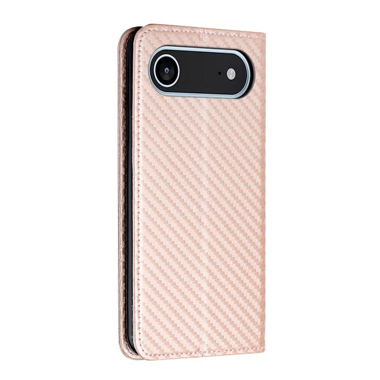 Funda de cuero con tapa magnética y textura de fibra de carbono para iPhone Air (oro rosa)