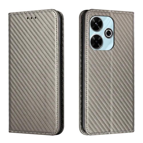 Funda de Cuero con Tapa Magnética y Textura de Fibra de Carbono para Xiaomi Redmi 13 4G (Gris)
