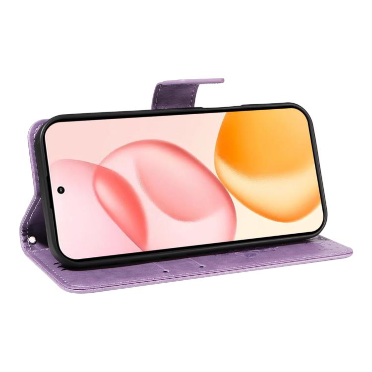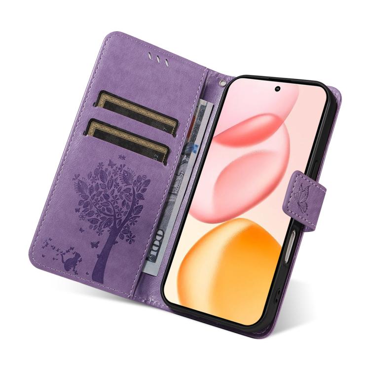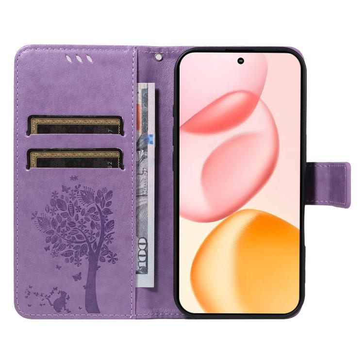 Funda de cuero con tapa para Honor 400 Global (156,5 mm), diseño de árbol y gato (morado claro)