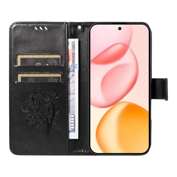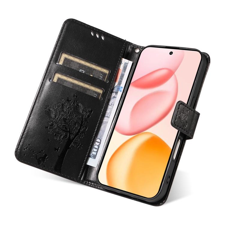 Funda de cuero con tapa para Honor 400 Global (156,5 mm), diseño de árbol y gato (negro)