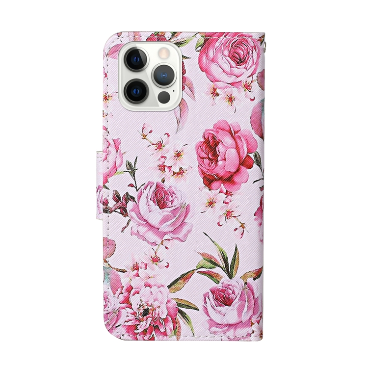 Funda de Cuero con Tapa para iPhone 13 Pro con Patrón de Dibujo a Color (Peonía)