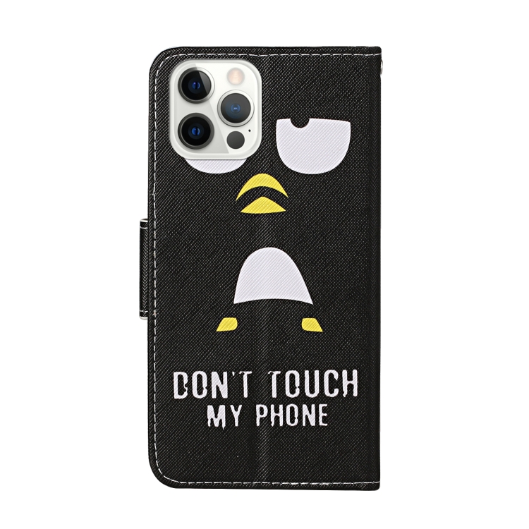 Funda de Cuero con Tapa para iPhone 13 Pro Patrón Dibujo a Color (Pingüino)