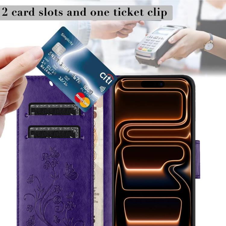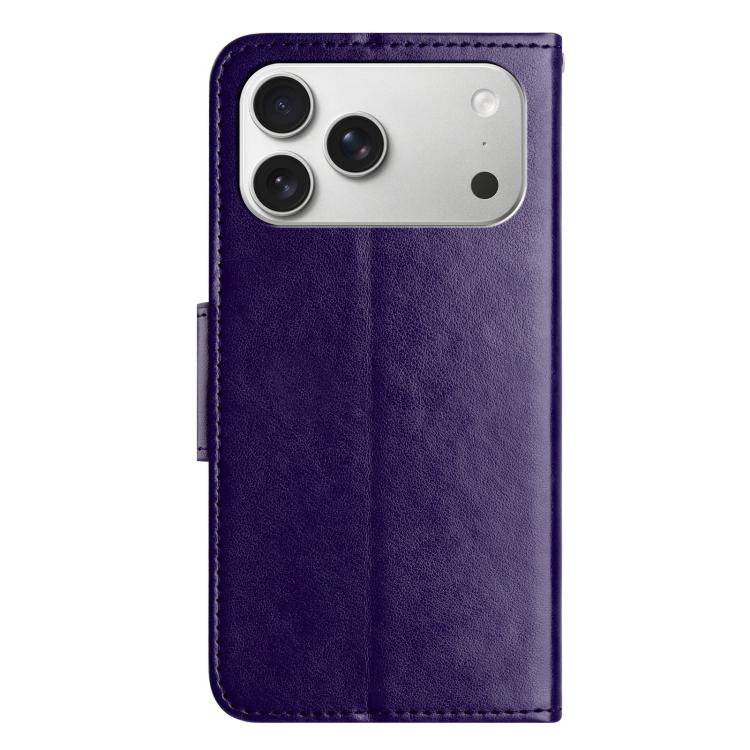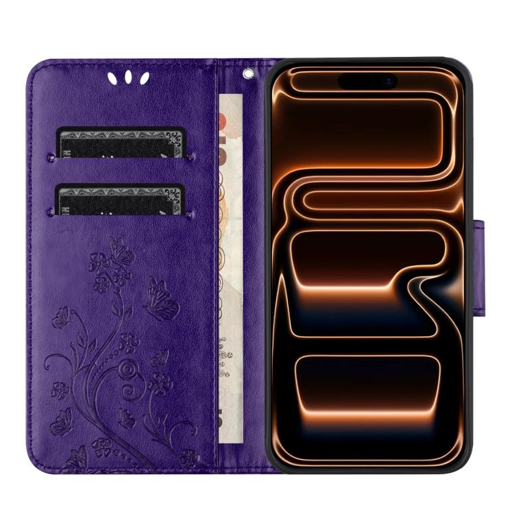 Funda de cuero con tapa para iPhone 17 Pro Max con diseño de mariposas y flores (morado oscuro)