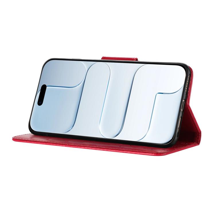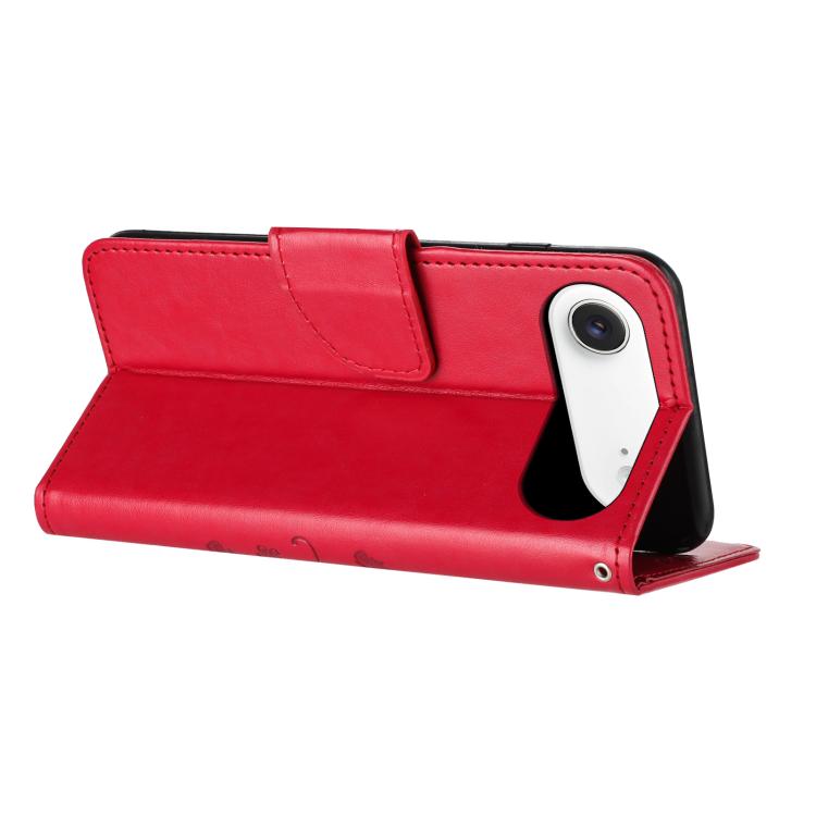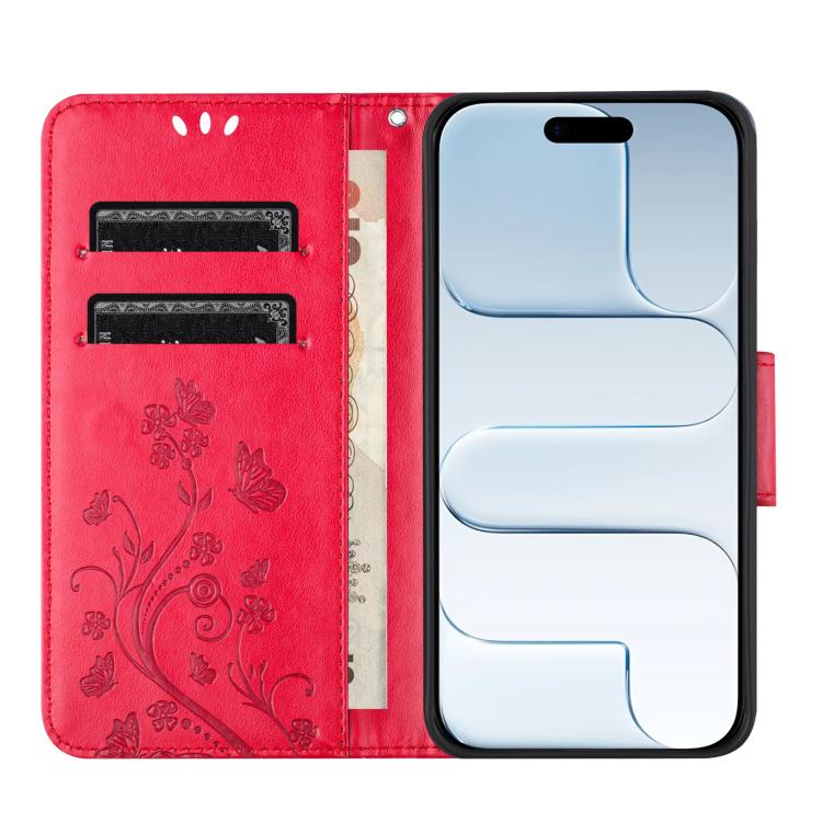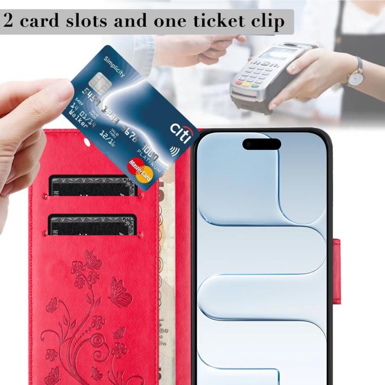 Funda de cuero con tapa para iPhone Air con diseño de mariposas y flores (roja)