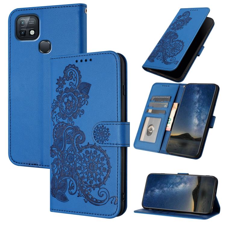 Funda de Cuero con Tapa y Relieve Flor de Datura para Infinix Hot 10I (Azul)