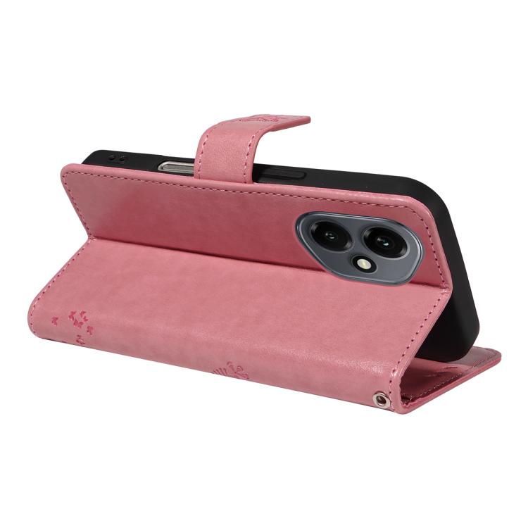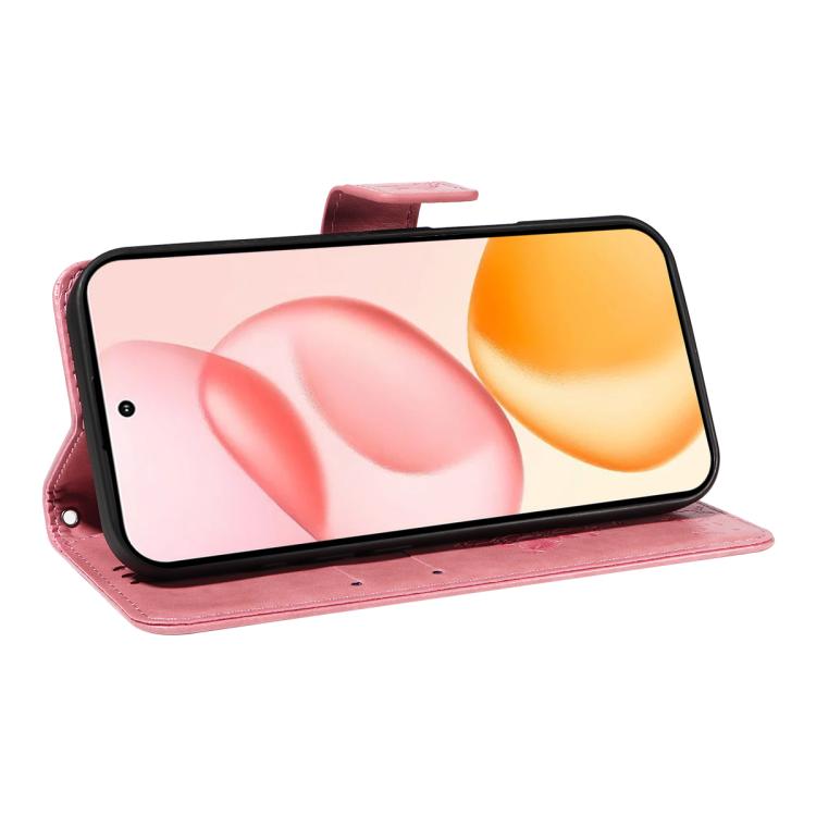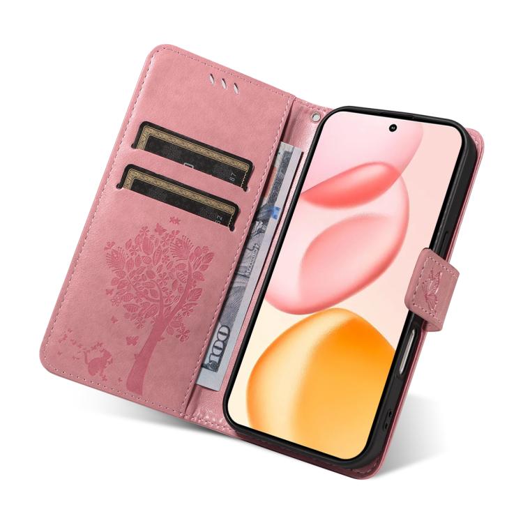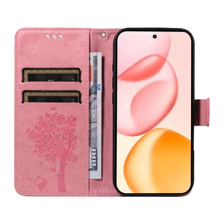 Funda de cuero con tapa para teléfono Honor 400 Global de 156,5 mm con diseño de árbol y gato en relieve (rosa)