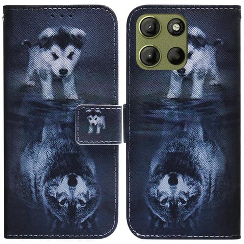 Funda de Cuero con Tapa para Motorola Moto G15 con Dibujo Lobo y Perro