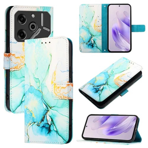 Funda de Cuero con Tapa para Teléfono Tecno Pova 6 5G Pt003 Diseño Mármol (Verde)