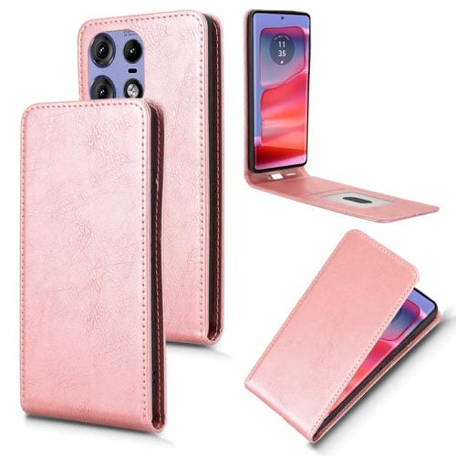 Funda de Cuero con Tapa Vertical Magnética para Motorola Edge 50 Pro 5G (Oro Rosa)