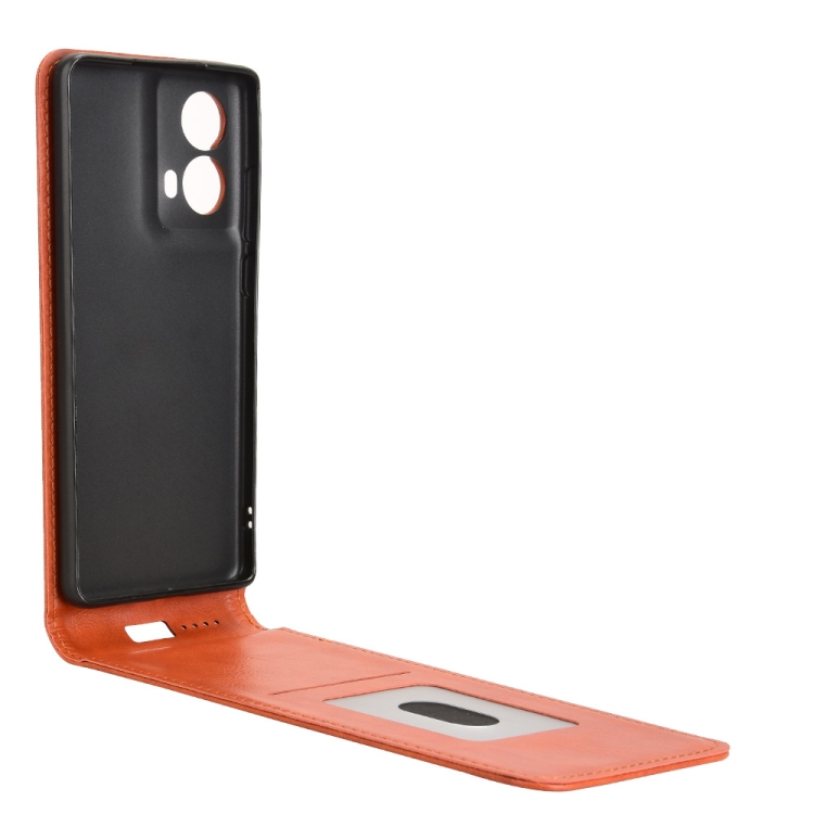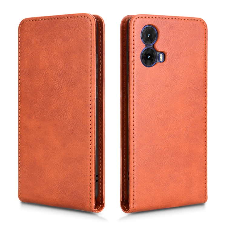 Funda de Cuero con Tapa Vertical Magnética para Motorola Moto G85 5G y S50 Neo 5G (Marrón)