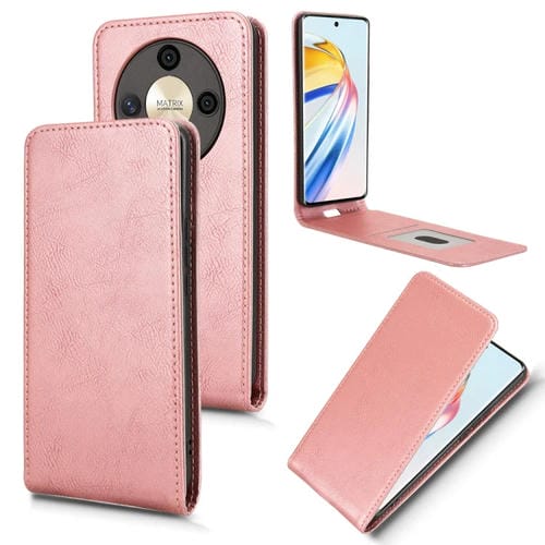 Funda de Cuero con Tapa Vertical Magnética para Honor Magic6 Lite/X9B 5G (Oro Rosa)