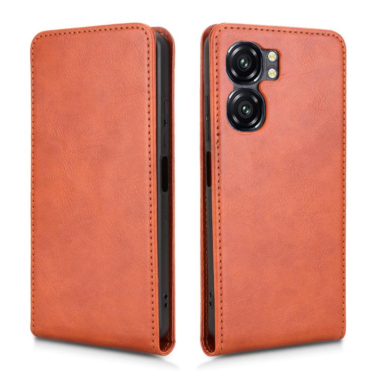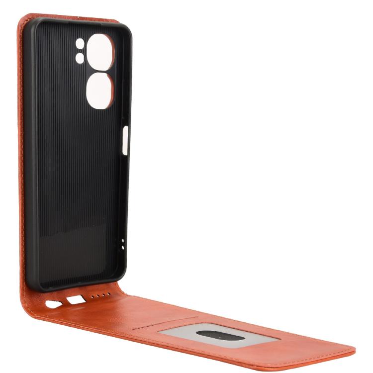 Funda de Cuero con Tapa Vertical Magnética para Oukitel C58 y C58 Pro (Marrón)