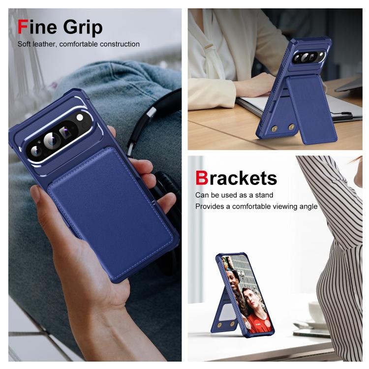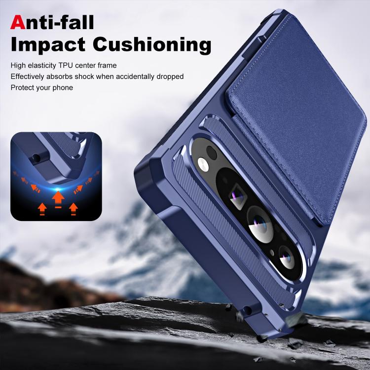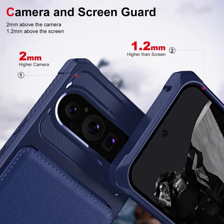 Funda de Cuero con Tapa Vertical para Google Pixel 9 y 9 Pro (Azul Oscuro)