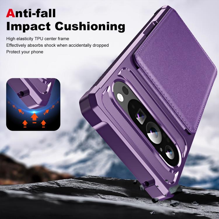 Funda de Cuero con Tapa Vertical para Google Pixel 9 Pro XL con Tarjetero y Ranura (Morado)