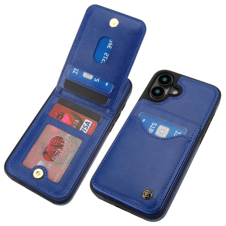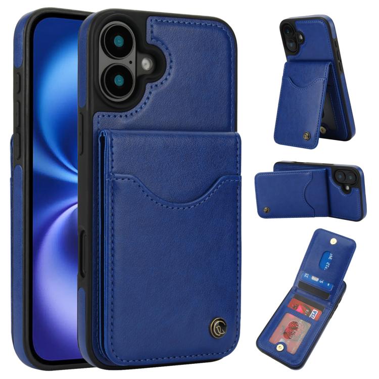 Funda de Cuero con Tapa Vertical para iPhone 16 Awquer con Tarjetero (Azul)