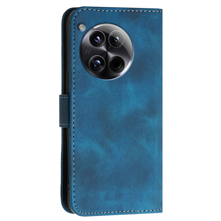 Funda de Cuero con Tapa y Cordón para OnePlus 12 Yx0080 con Diseño En Relieve (Azul Oscuro)