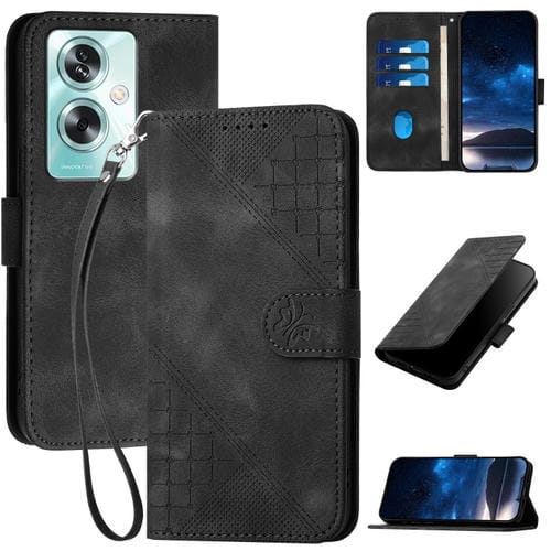 Funda de Cuero con Tapa y Cordón para Oppo A79 5G Global Yx0080 con Diseño En Relieve de Mariposa y Cuadrícula (Negro)