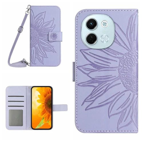 Funda de Cuero con Tapa y Cordón para Tecno Spark 30 5G con Diseño de Girasol (Morado)