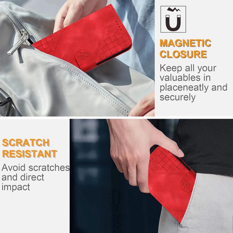 Funda de Cuero con Tapa y Cordón para Vivo Y22 4G Global Yx0080 con Diseño En Relieve de Mariposa y Cuadrícula (Rojo)