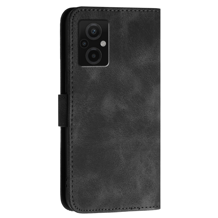 Funda de Cuero con Tapa y Cordón para Xiaomi Poco M5 Yx0080 con Diseño de Mariposa En Relieve y Cuadrícula (Negro)
