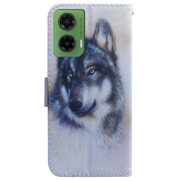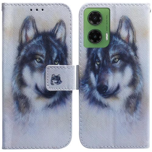 Funda de Cuero con Tapa y Dibujo a Color para Motorola Moto G35 (Lobo Blanco)